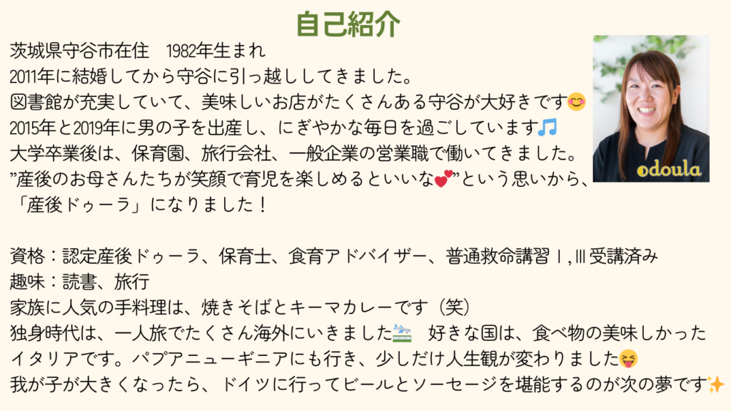 *自治体の助成利用の際はご利用いただけるサポート内容が異なる場合がございます* 〈予約可能日カレンダー〉 「空きあり」になっていない日にちでも、サポート可能なこともございます。 ご希望の日時がございましたら、お気軽にお問い合わせください。 Instagram e35watanabe 産前産後の家事育児サポート「産後ドゥーラ」 ご飯作りなどの家事&赤ちゃんのお世話もお任せください♪ 毎日頑張っているママに心と時間の「ゆとり」を💕 ✳︎認定産後ドゥーラ ✳︎保育士 ✳︎食育アドバイザー ✳︎離乳食アドバイザー 2児(小4&6才)の母&保育園でもパートをしています! #産後ドゥーラ いまさらだけど、新年度に向けて改めて「自己紹介」😊 好きな食べ物はソフトクリームとお寿司です🍣 コ 「離乳食作り」って大変ですよね。 そして、後期食は3回食になるので、1日があっという間! 赤ちゃん これから春にむけて、出会いと、そして「卒業」の季節ですね🌸 ドゥーラサポートをご卒業される方も多い時 大好きな明橋大二先生から学びたい! 直接学びたい!! ここ数年ずっとそんな夢がありました😊 そして 睡眠不足、栄養不足になりやすい産後の時期に家事も育児もサポートできるのが「産後ドゥーラ」です! 産前 新年早々、「あっ!これ、私がいま1番学びたいこと!」という分野に出会い、わくわくが止まりません😊💕 たくさんの素敵な出会いとご縁があった1年でした! ドゥーラとしても、たくさんのママに出会い、サポー ギリギリまで悩んだのですが、既存のご利用者様をしっかりサポートさせていただくためにも、今年度の新規の さらに読み込む Instagram でフォロー